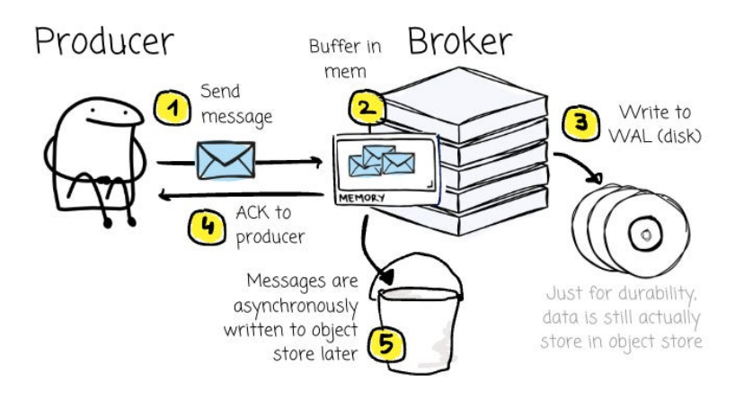 相较于等待一批消息被完整写入对象存储,在消息持久化至 WAL(磁盘)后立即发送 ACK 响应,无疑要快得多。