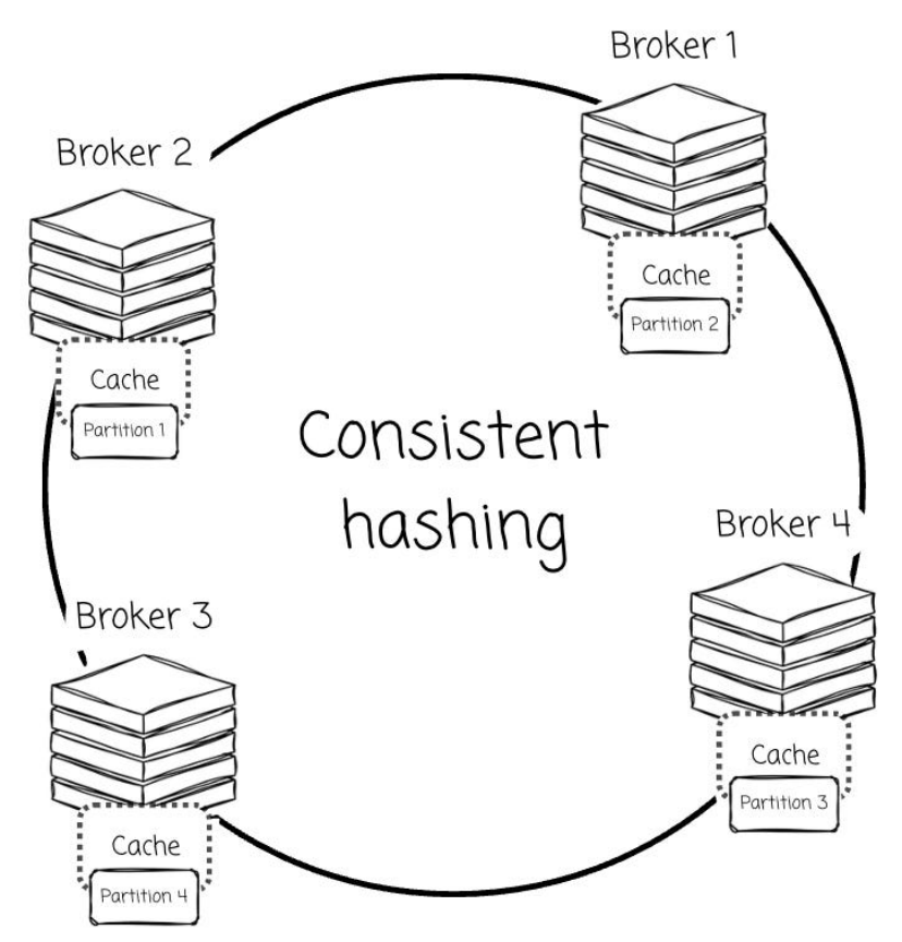 据我了解,为了解决这一问题,厂商们试图将分区“绑定”给特定的 Broker。例如,WarpStream 利用一致性哈希算法将分区分配给特定的 Broker,由该节点全权负责指定分区的缓存与数据服务。