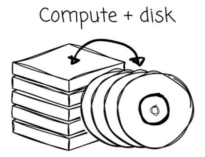 - 那时的网络带宽相当有限;因此,构建系统的标准做法是将计算与存储紧密绑定在一起(即存算一体)。