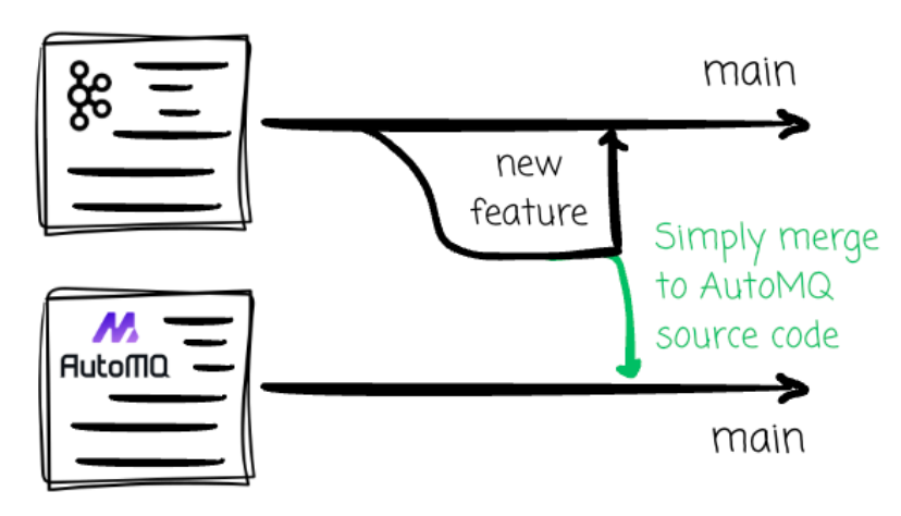得益于此,AutoMQ 有底气为其Diskless Kafka方案承诺 100% 的 Kafka 兼容性;即便 Kafka 社区后续推出了诸如队列(queues)等前沿新特性,AutoMQ 也能通过合并上游代码,实现无缝集成与同步支持。