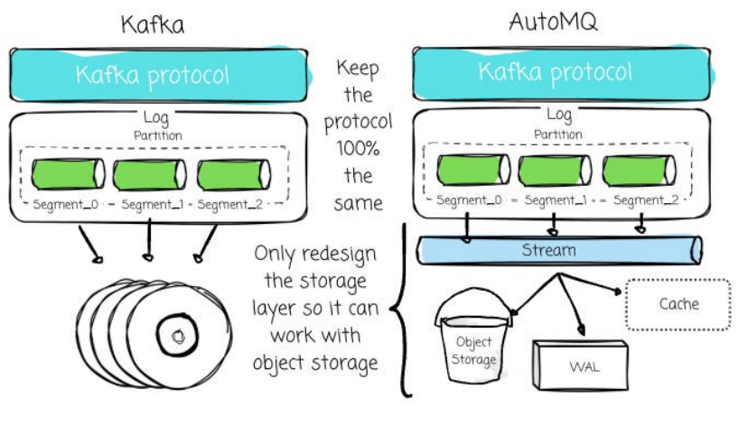 因此,任何厂商若想提供更优的替代方案,其首要前提必须是兼容 Kafka。推倒重来去构建一套全新的系统并非良策,重构 Kafka 的存储层才是更为高效的路径。