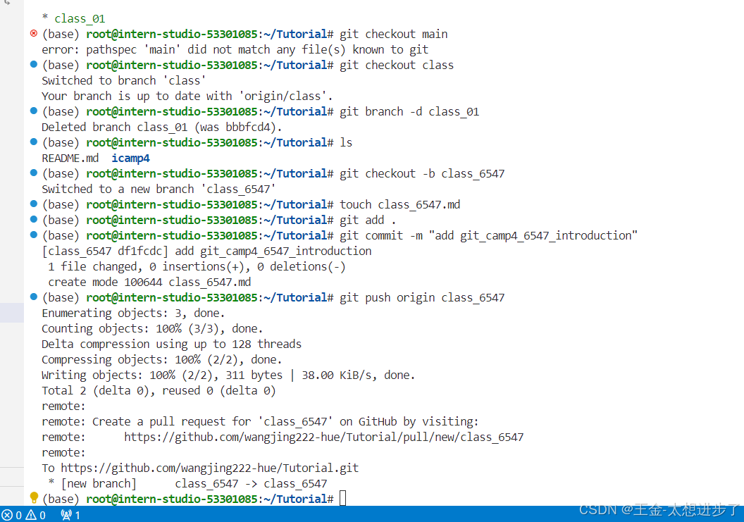 git push origin class_036 #注意,这里要改为你自己的分支名称 #大家提交使用英文,避免同步错误