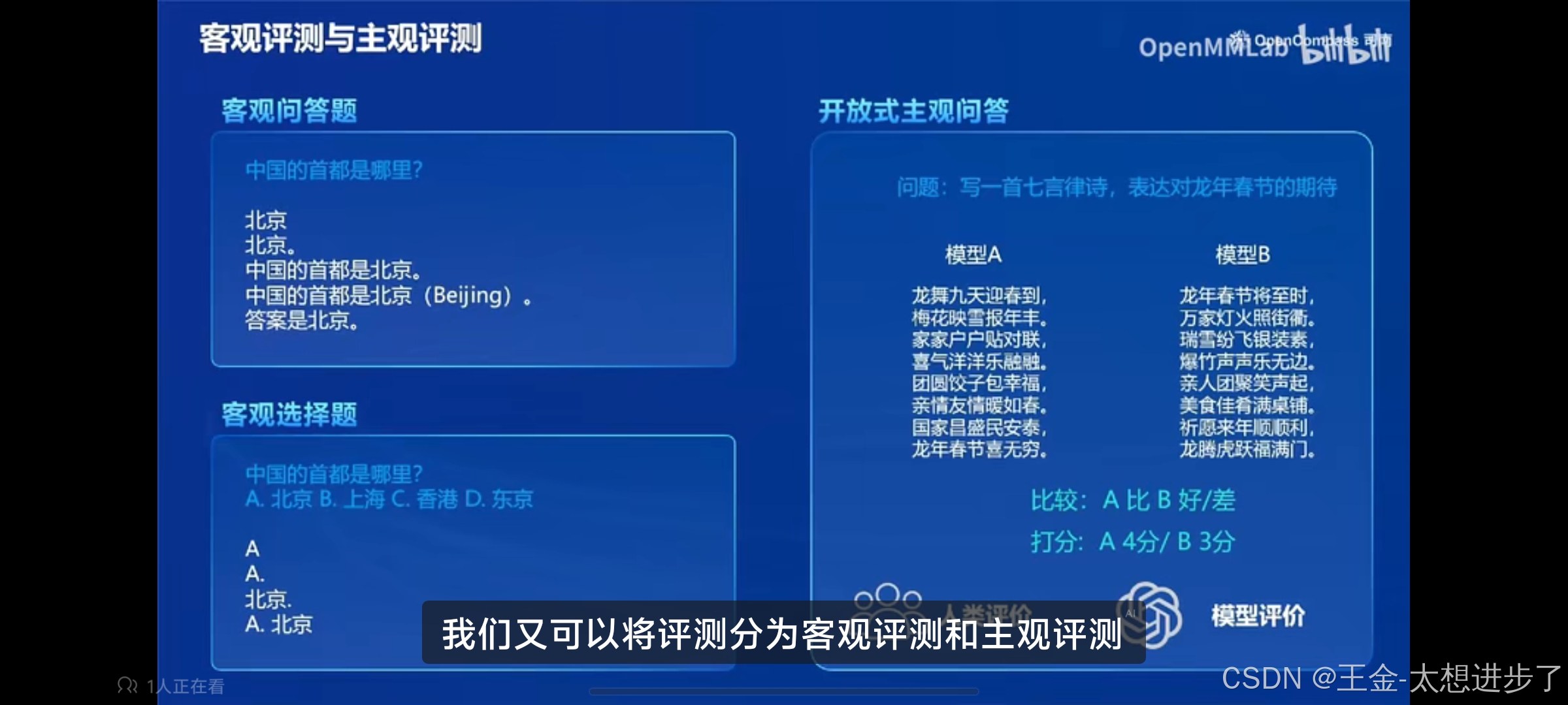 本节课程聚焦于大语言模型的评测,在后续的课程中我们将介绍多模态大模型的评测方法。
