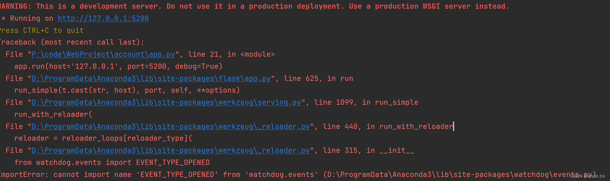 文章描述了作者在将Flask框架升级到3.0.3版本时遇到的问题,通过升级watchdog模块解决了运行时的错误,展示了升级过程中的问题排查和解决方案。