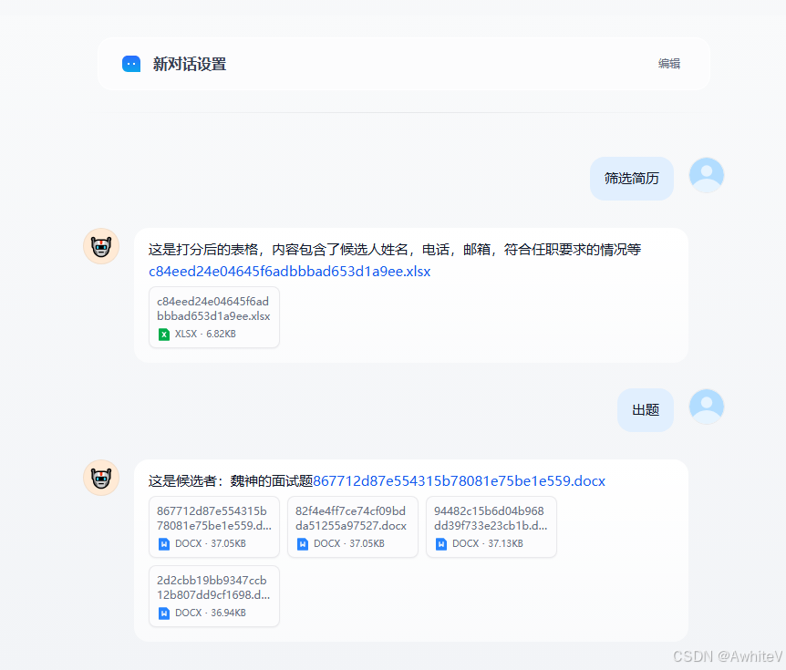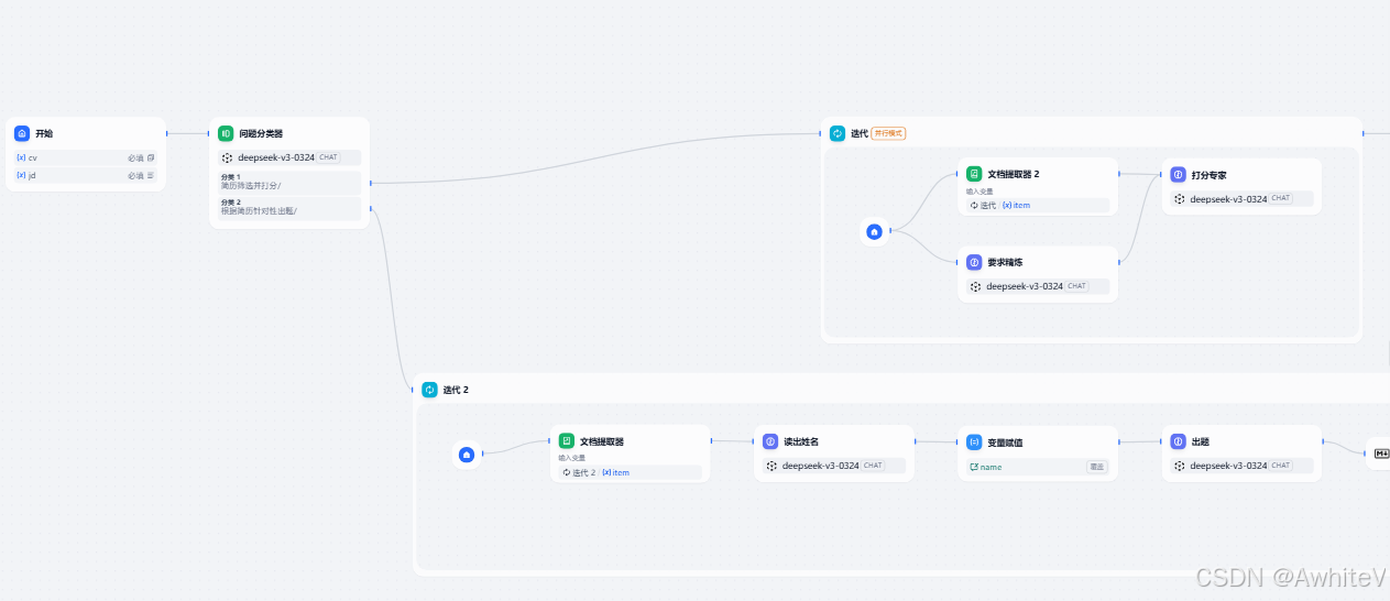 - 变量赋值:从简历中提取出候选人的姓名等关键信息,进行变量赋值,以便生成个性化的面试题。