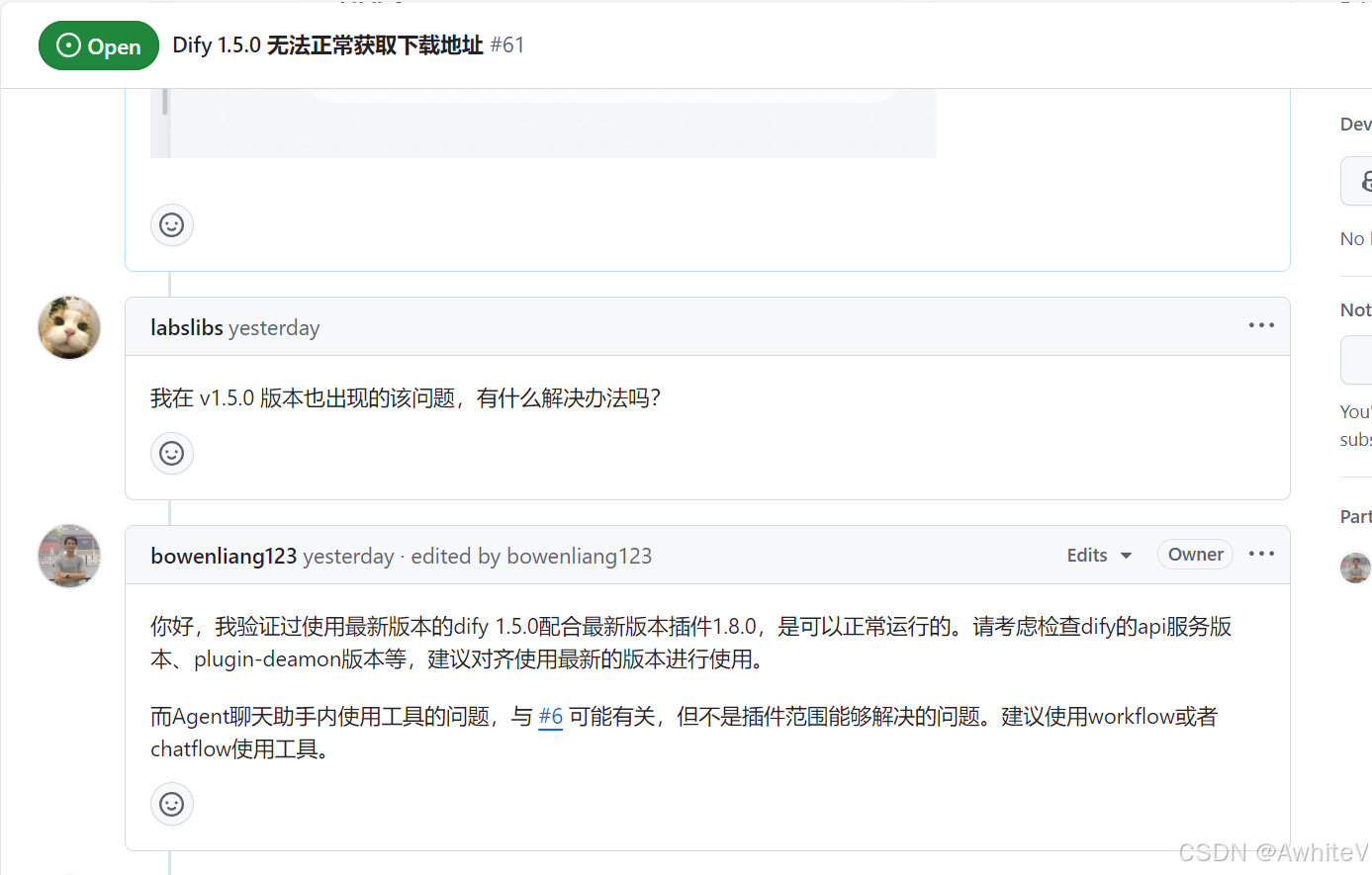 笔者想试用新版本dify的调试功能,在运行chatflow时,发现原来的markdown转换工具无法弹出下载链接了(如图1、2所示)。在官方的issue里发现其他人也有这个问题,暂时没有发现好的解决方法(如图3所示)