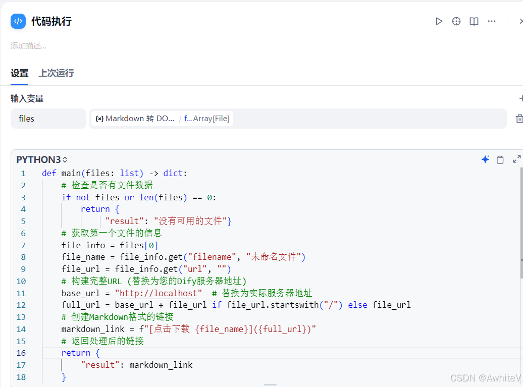 通过变量检查,我发现其实markdown转换工具已经正确生成了excel文件,但是只是无法在聊天框显示下载链接。我怀疑是没有正确转换为md格式的链接,无法在dify聊天框渲染。