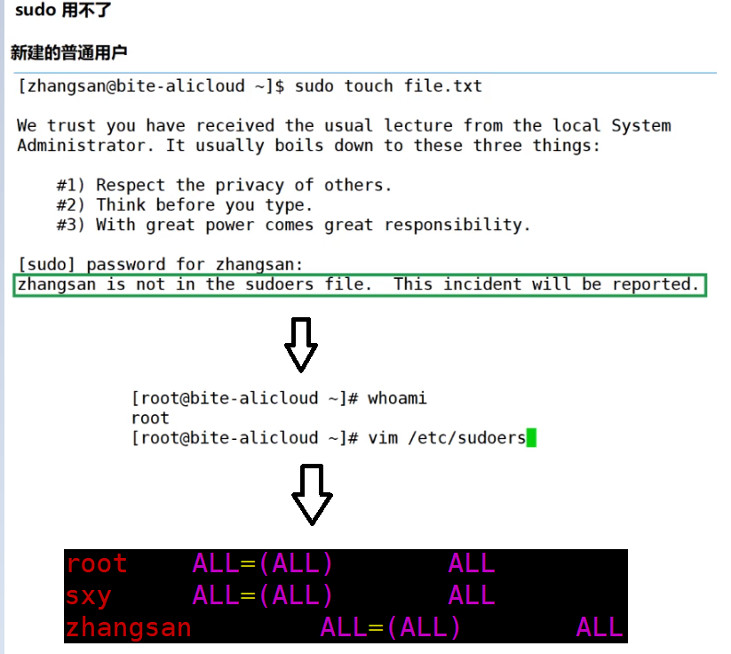 新建普通用户不能使用sudo