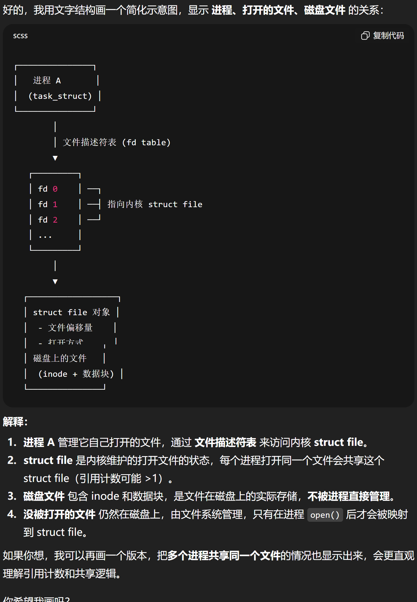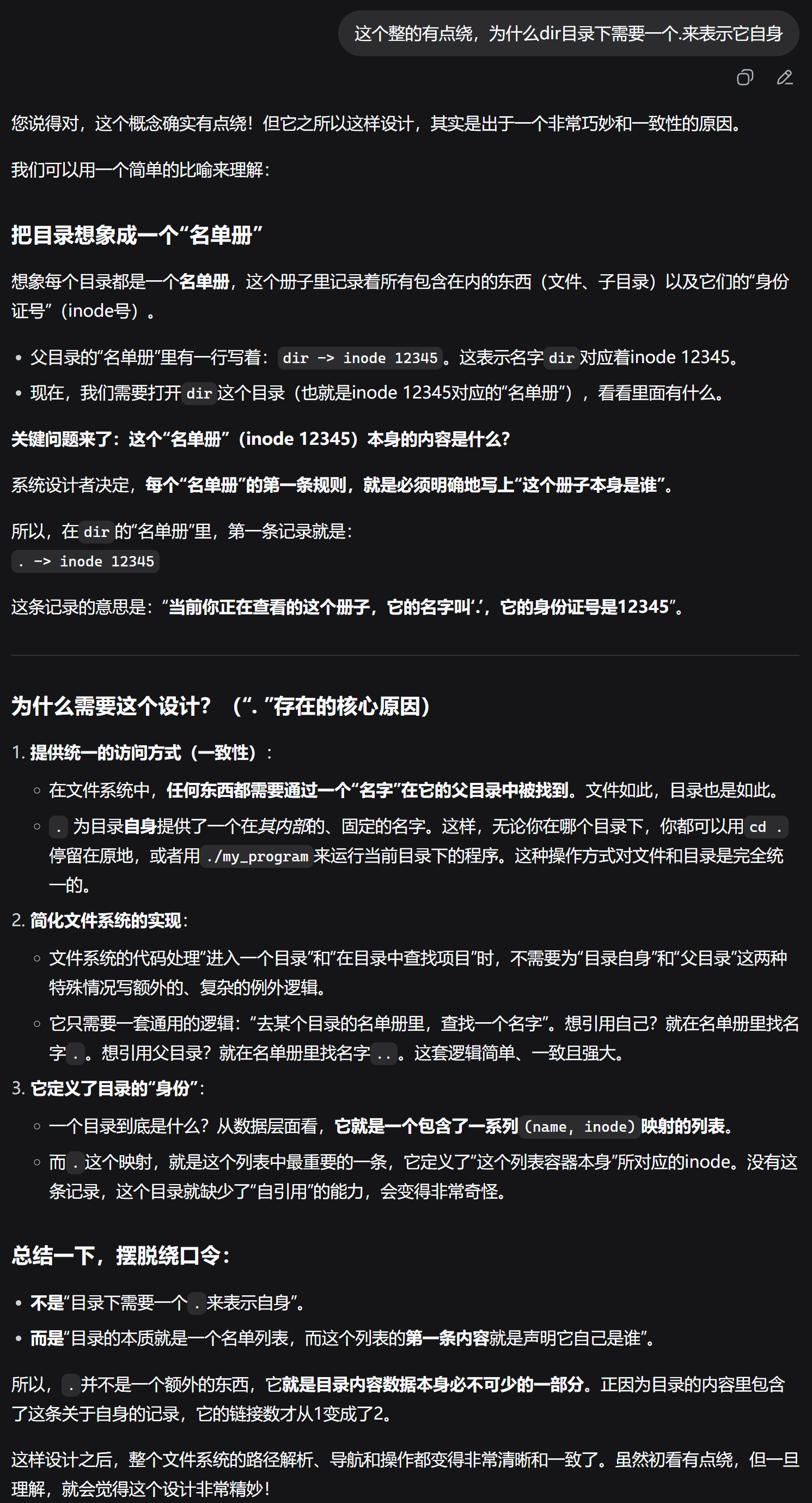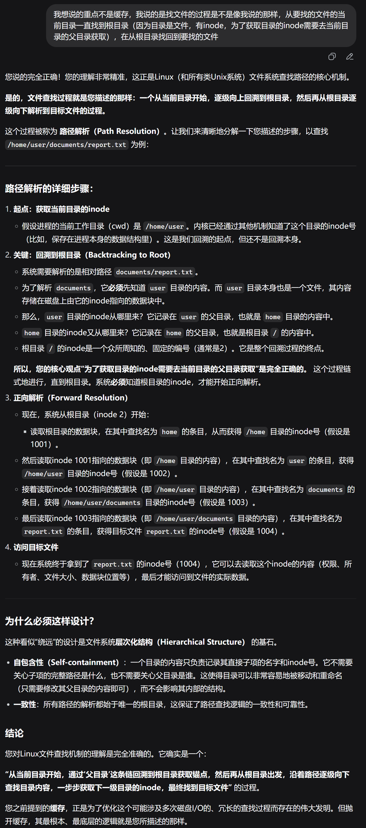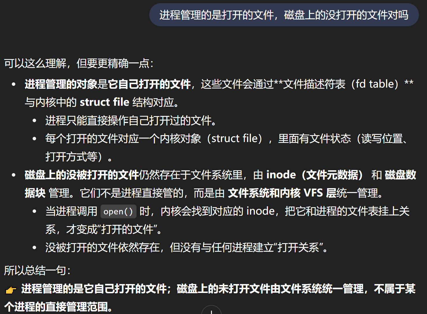 - D选项正确,inode就像是文件的一个整体的描述,有了这个描述,上层就可以重新组织虚拟逻辑结构,通过inode映射其物理结构(简单理解可以联想类似于虚拟地址空间与物理内存之间的页表)