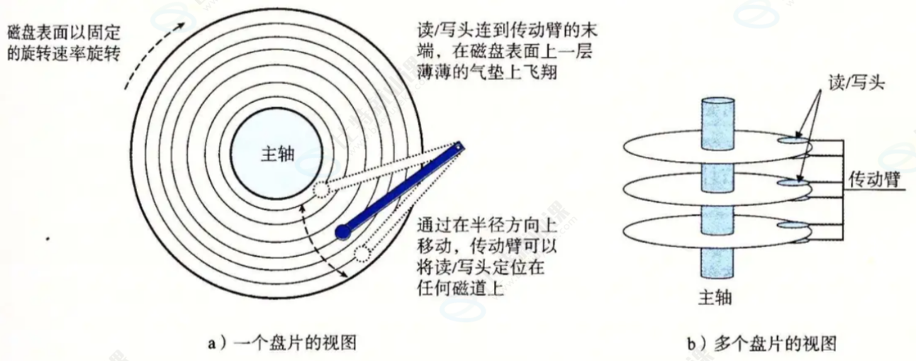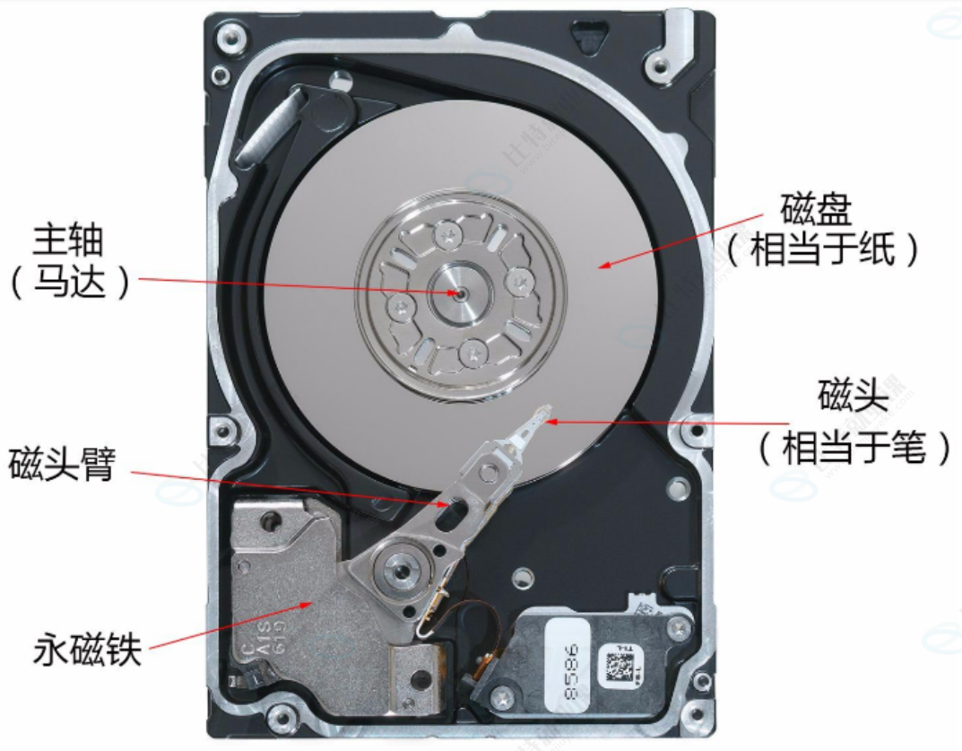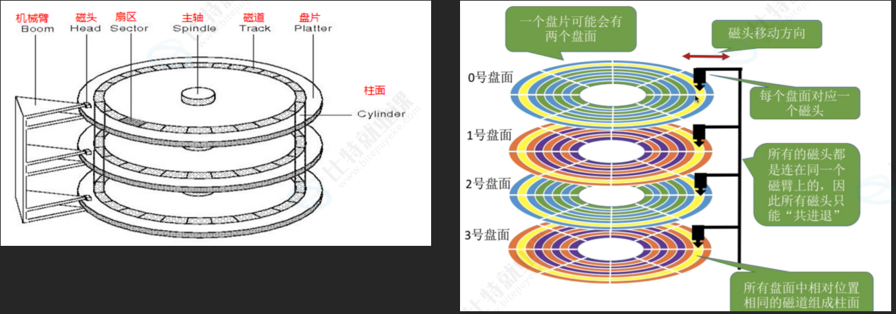 - 细节:传动臂上的磁头是共进退的(这点比较重要,后面会说明)