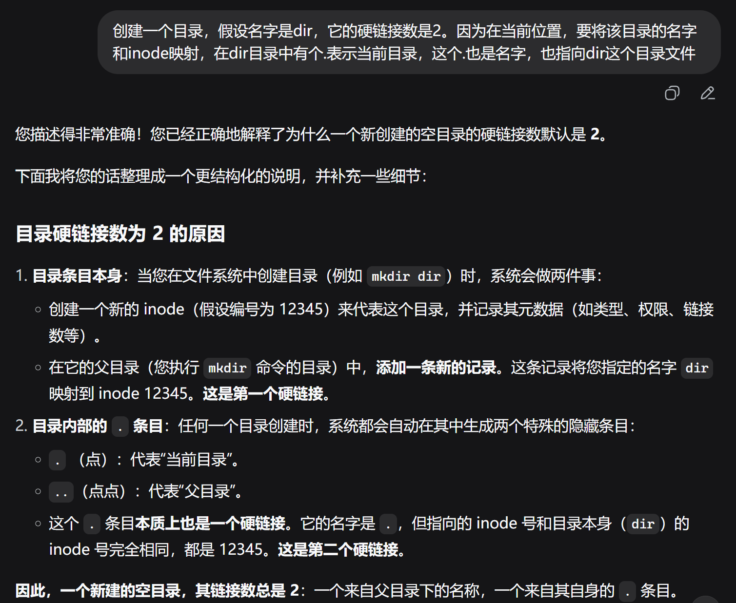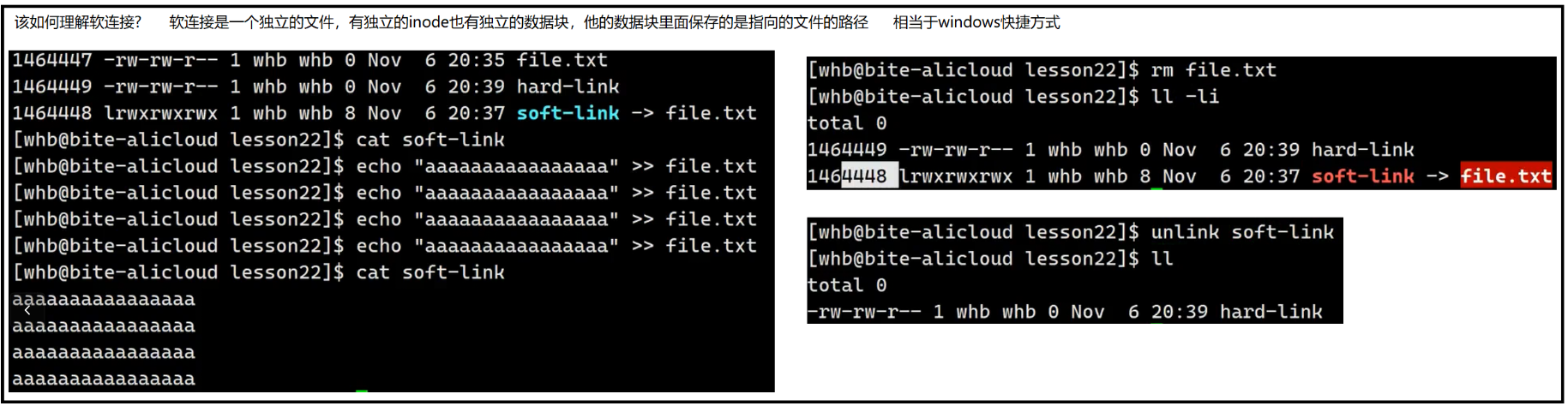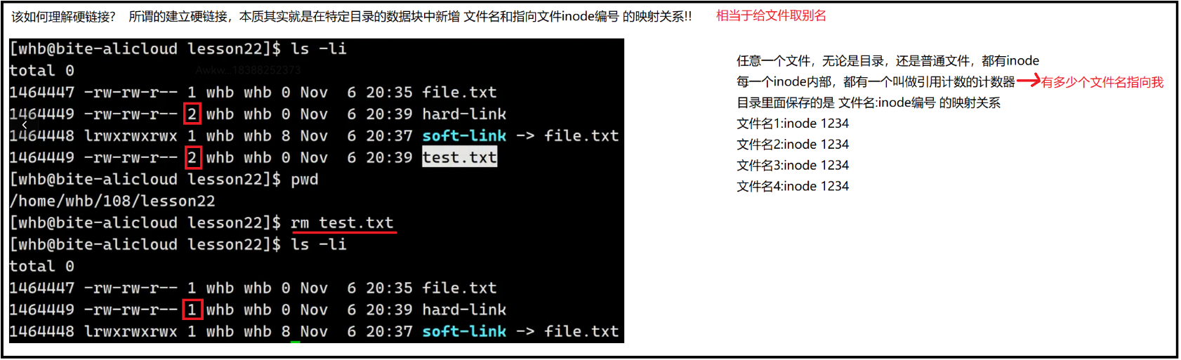 - 我们在删除文件时干了两件事情:1. 在目录中将对应的记录删除,2. 将硬连接数 -1,如果为 0,则将对应的磁盘释放。