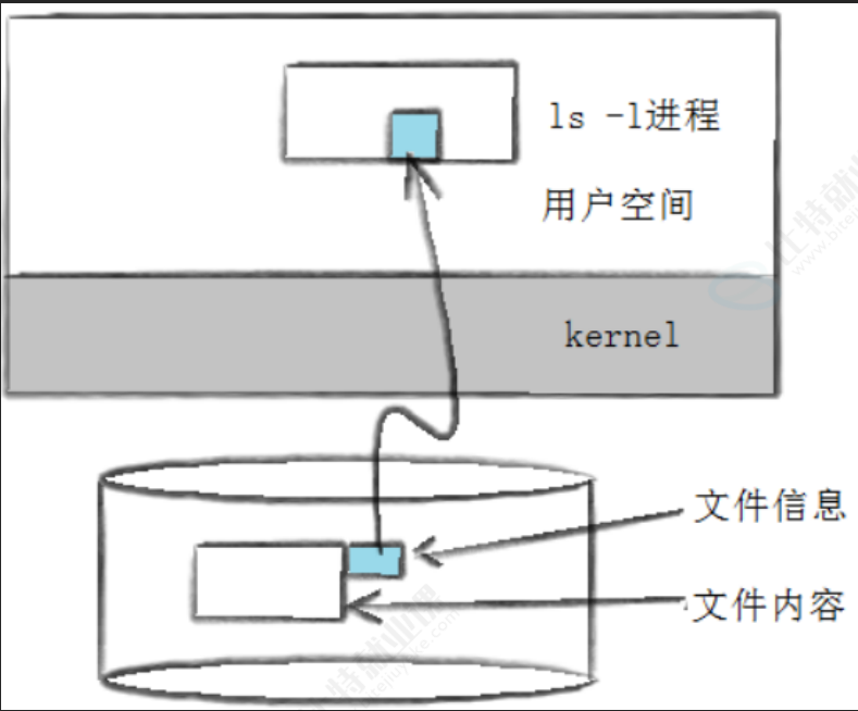 ls -l读取存储在磁盘上的文件信息,然后显示出来