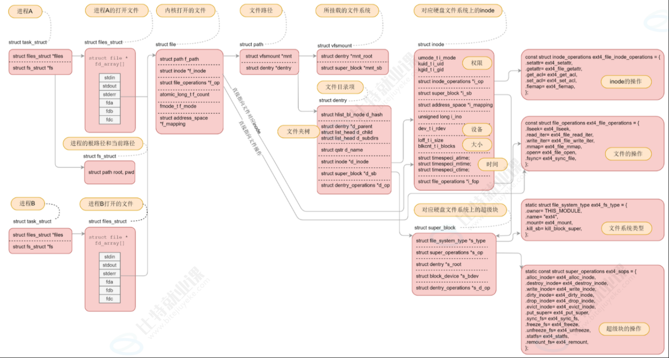 - B选项正确,inode中包含了文件的各种描述信息,权限,大小,时间属性,数据块指针....等等都包含在内