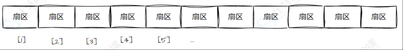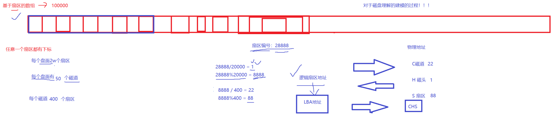 - 磁盘就是一个三维数组,我们把它看待成为一个“一维数组”,数组下标就是 LBA,每个元素都是扇区。