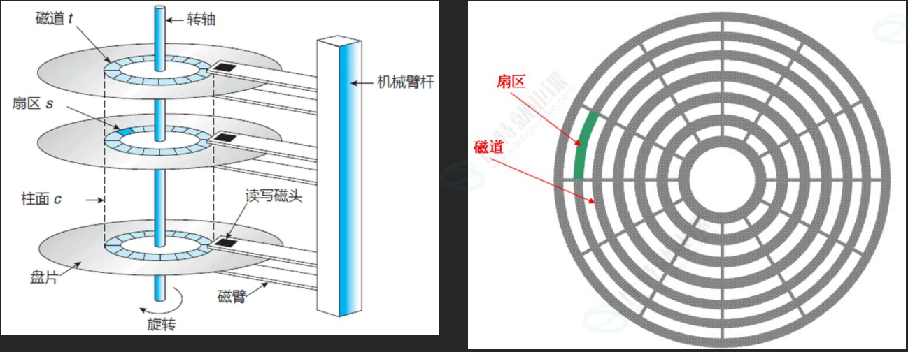 - 磁盘容量=磁头数 × 磁道(柱面)数 × 每道扇区数 × 每扇区字节数