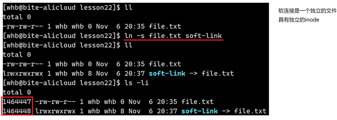 软链接文件是一个独立的文件有自己的inode节点,文件中保存了源文件路径,通过数据中保存的源文件路径访问源文件
