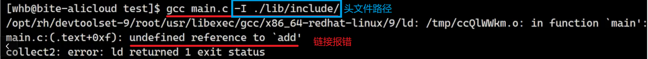 -I选项 指定头文件路径,但链接报错,找不到add的实现