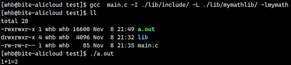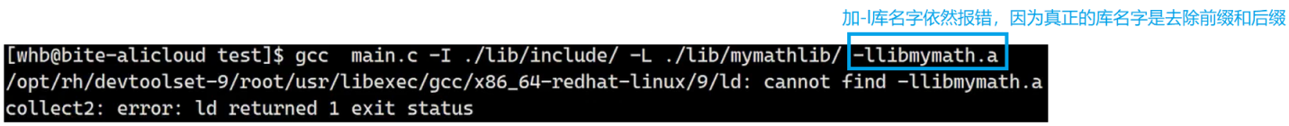 $ gcc main.c -I 头⽂件路径 -L 库⽂件路径 -lmymath