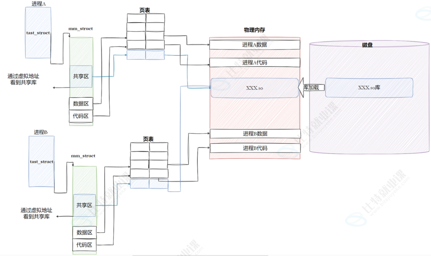 - 而且:整个调用过程,是从代码区跳转到共享区,调用完毕再返回到代码区,整个过程完全在进程地址空间中进行的。