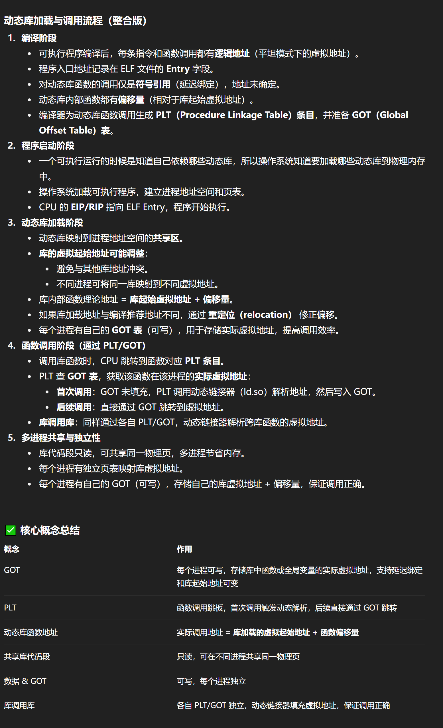 - 也就是说,我们的程序运行之前,先把所有库加载并映射,所有库的起始虚拟地址都应该提前知道。