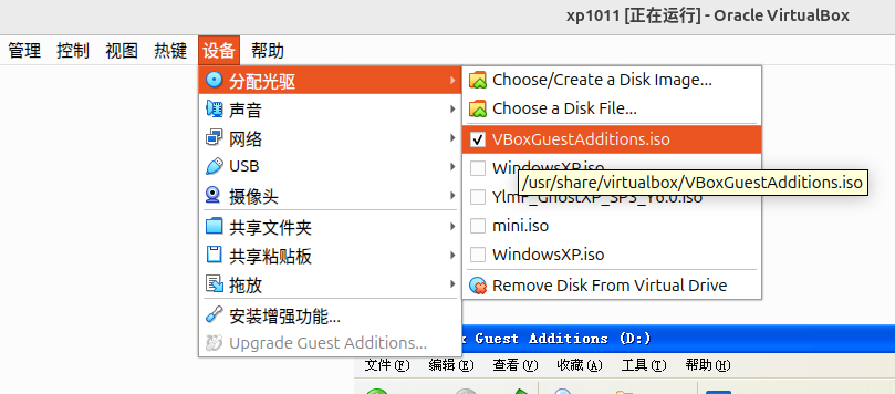 在乌班图下想安装XP无法复制粘贴,发现是增强包没安装,先下载,注意版本