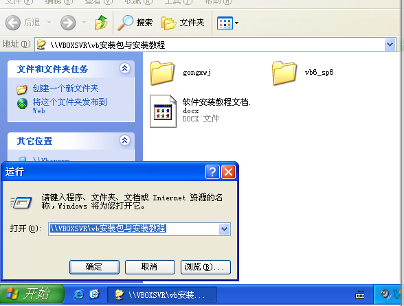 然后到XP虚拟机内WINDOW+R调出运行输入 \\VBOXSVR\文件夹名字 就可以在网络邻居里面看到文件夹了