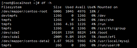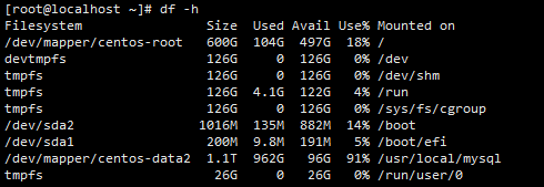 5.以上操作查验分区/dev/mapper/centos-data2扩容成功,由1.1T扩容后1.6T。