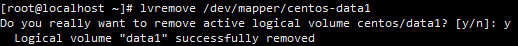 3.删除逻辑卷,fdisk –l看不到了 命令:lvremove /dev/mapper/centos-data1