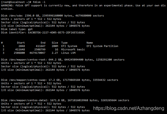 1.确认当前Linux系统磁盘大小和分区情况,如下:df -h
