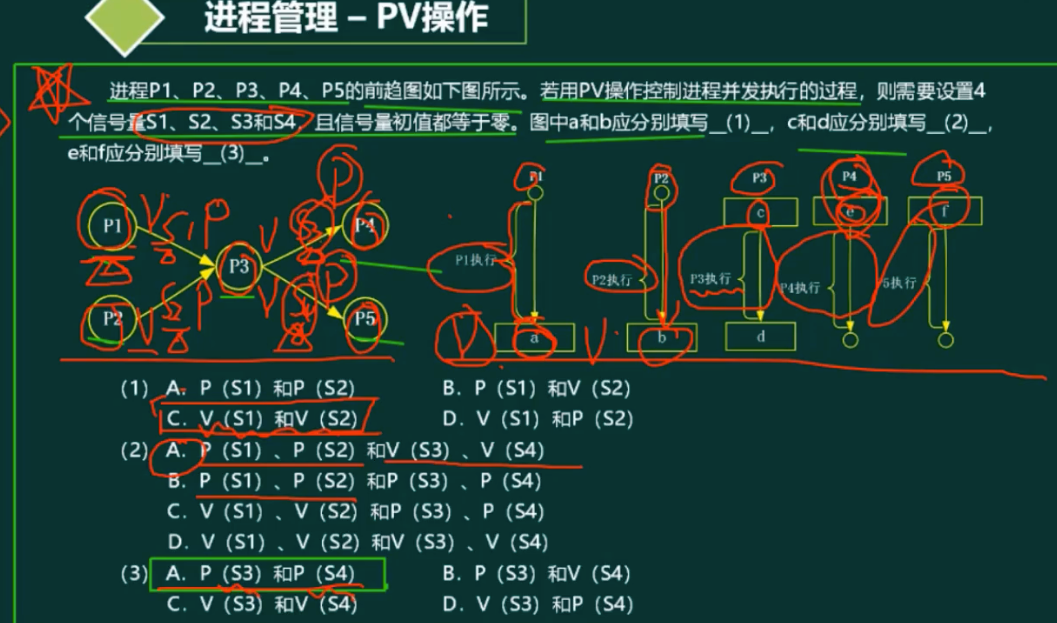 - 经典案例(要知道初始化的信号量以及对应的PV操作是哪些)