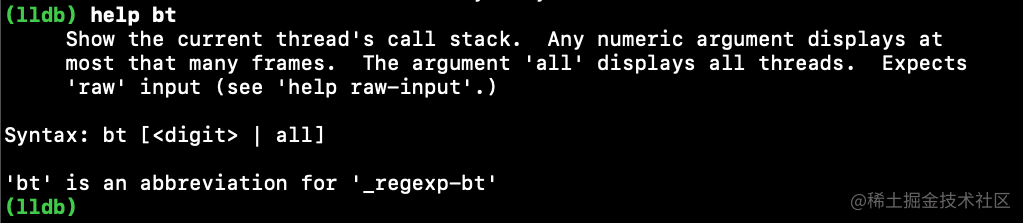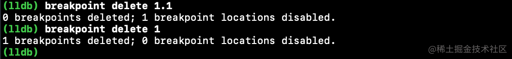 以上这些所有的lldb命令,都可以缩写,比如:breakpoint set -r save: --file ViewController.m可以缩写成b -r save: -f ViewController.m``breakpoint list可以缩写成break li``breakpoint disable 8.1可以缩写成bre dis 8.1``breakpoint enable 8.1可以缩写成bre en 8.1反正你可以去各种尝试,多一个少一个字母或许都能行,比较随意,比起普通的命令错一个字符都不行还是蛮牛逼的。