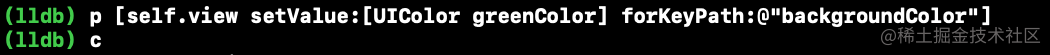 通过help po我们知道就是在主线程执行表达式,那么我们可以试试在lldb中修改一些常见的属性,比如self.view.backgroundColor,首先来到touchesBegan:断点,在lldb输入如下指令p self.view.backgroundColor = [UIColor redColor];<img src="https://p9-juejin.byteimg.com/tos-cn-i-k3u1fbpfcp/dc5c508108d54a81a3481ba930115338~tplv-k3u1fbpfcp-zoom-in-crop-mark:4536:0:0:0.image) 发现确实执行了这句代码,但是却报了一个让人疑惑的错误,而且过掉断点之后并没有任何效果,当然了明明执行都报错了,怎么可能会有效果呢。。。但是这一行代码,在程序中运行的话,肯定是没有问题的,我们查看UIView的头文件也可以发现它确定是有backgroundColor这个属性的。至于为什么我在网上搜索半天没有找到任何答案,感觉可能是lldb的bug?虽然这句代码无效,但是我们依然可以尝试使用其他的方式来修改,比如:p [self.view setValue:[UIColor blueColor] forKey:@"backgroundColor"]