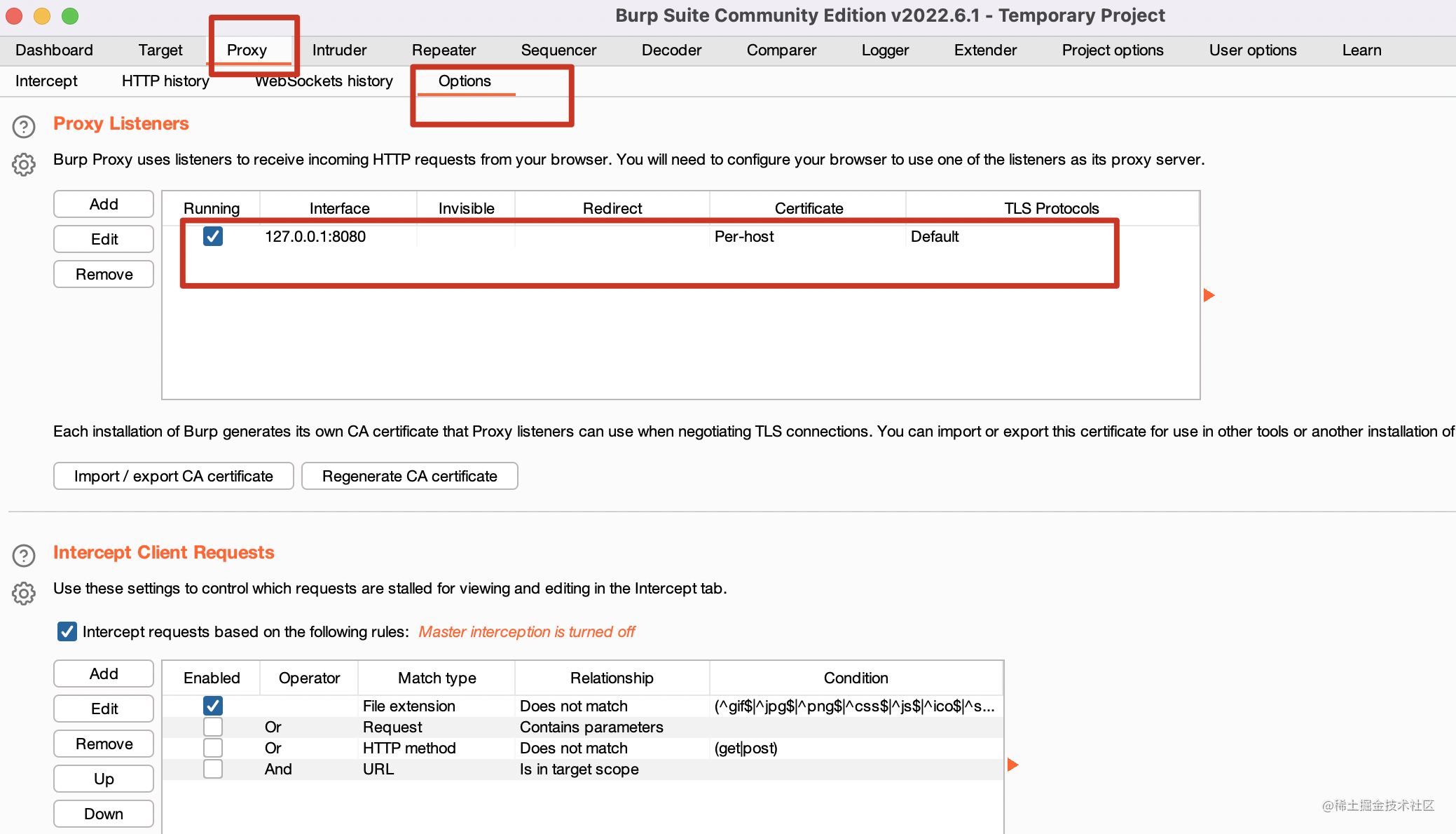 Brupsuite* Proxy - 拦截HTTP/HTTPS的代理服务器,作为一个浏览器和目标应用程序之间的中间人,允许你拦截,查看,修改在两个方向上的原始数据流* Intruder - 定制的高度可配置工具,对web应用程序进行自动化攻击 如枚举标识符,收集有用数据,以及使用fuzzing技术探测常规漏洞* Repeater - 靠手动操作来补发单独堆Http请求,并分析应用程序响应的工具* Sequencer - 分析不可预知的应用程序会话令牌和重要数据项的随机性工具* Decoder - 手动执行或对应用程序数据者智能编码解码* Comparer - 实用的工具,通过一些相关的请求和响应得到两项数据的一个可视化的差异* 下载地址 portswigger.net/burp监听代理端口配置
