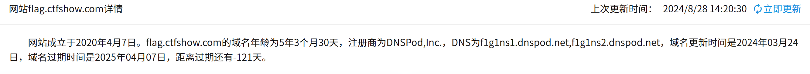 域名其实也可以隐藏信息,比如flag.ctfshow.com就隐藏了一条信息。