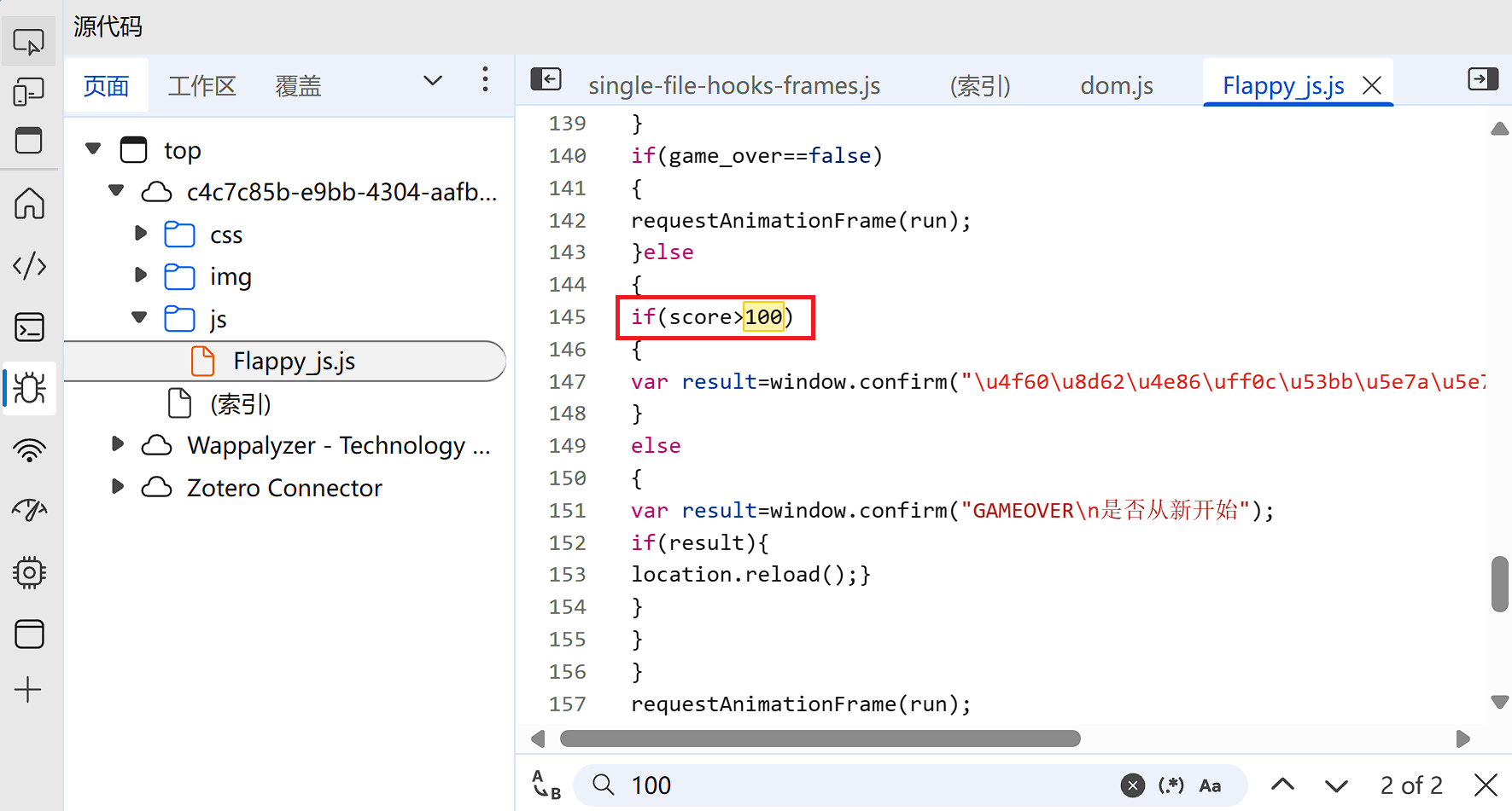 因此,现在控制台中给score赋值101,然后再运行run()函数,就能赢得游戏: