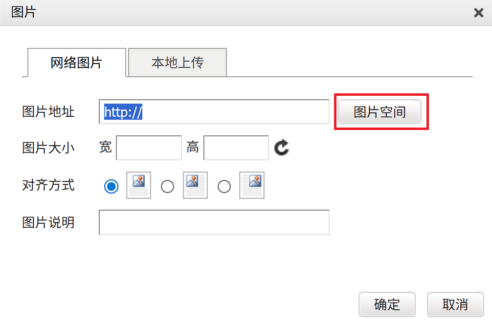 点第一个跳出来一个上传界面,点击图片空间按钮: