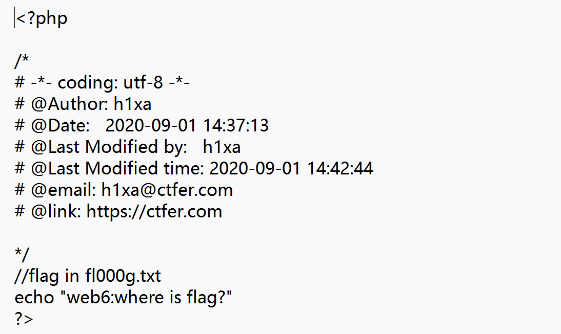 flag的值存储在flag_here中,我们只要在网页上访问fl000g.txt,就能看到它具体的值了: