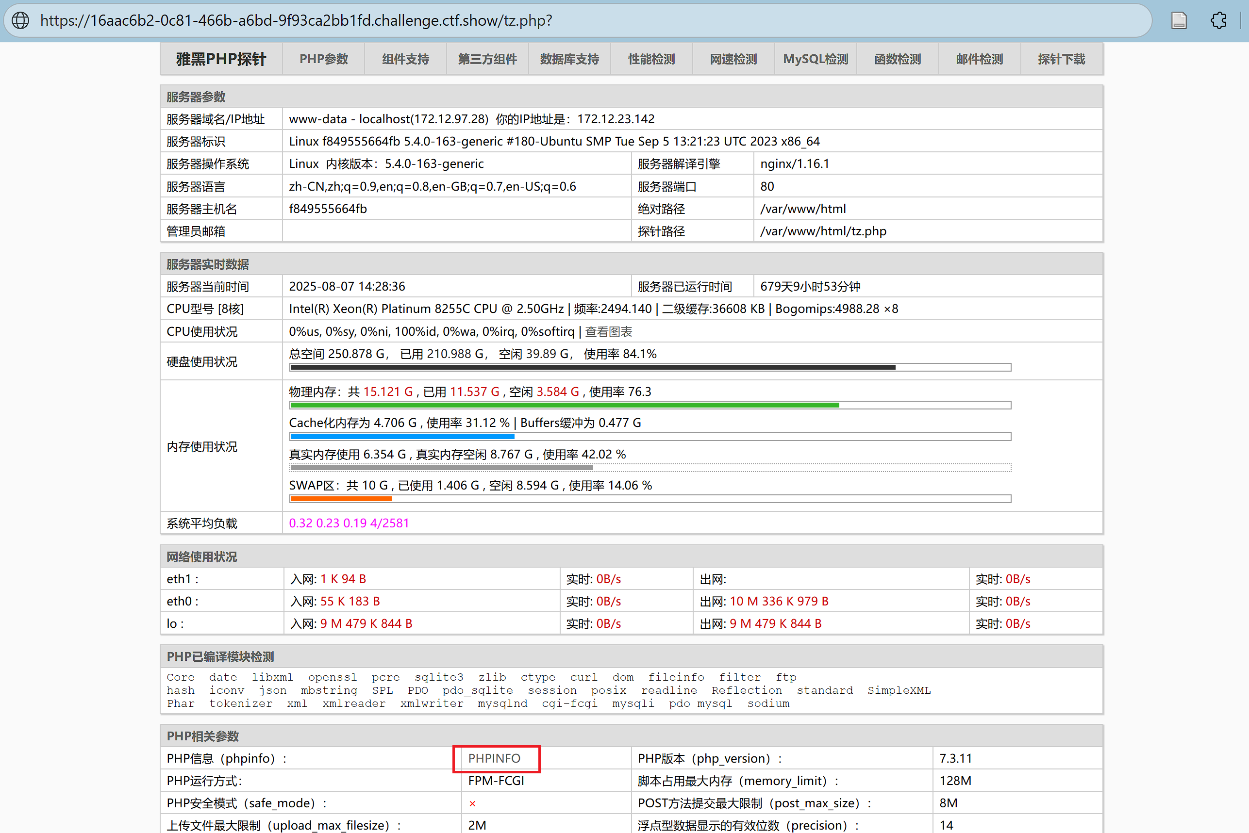 本题考查雅黑探针,URL后缀名添加/tz.php: