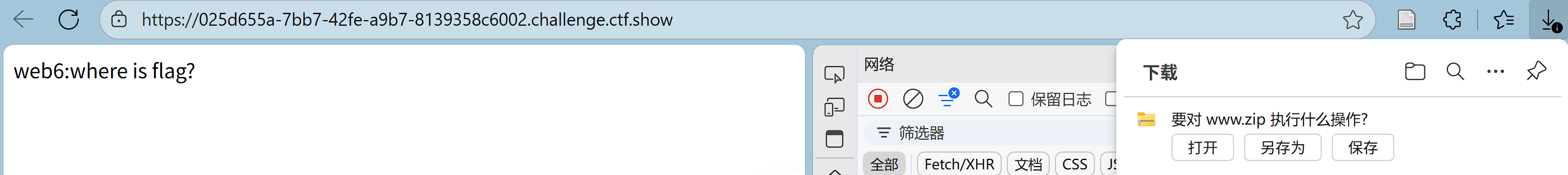 就算我们不知道代码泄露的知识,通过dirsearch扫描同样发现了www.zip。
