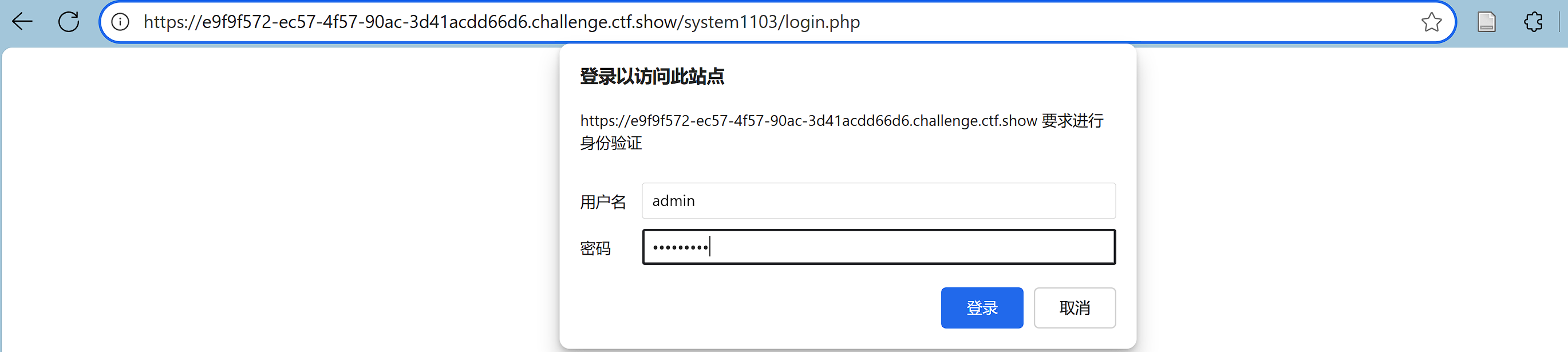 访问admin目录,跳出来一个弹窗要求输入账号密码: