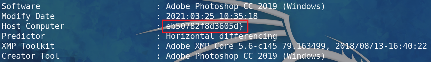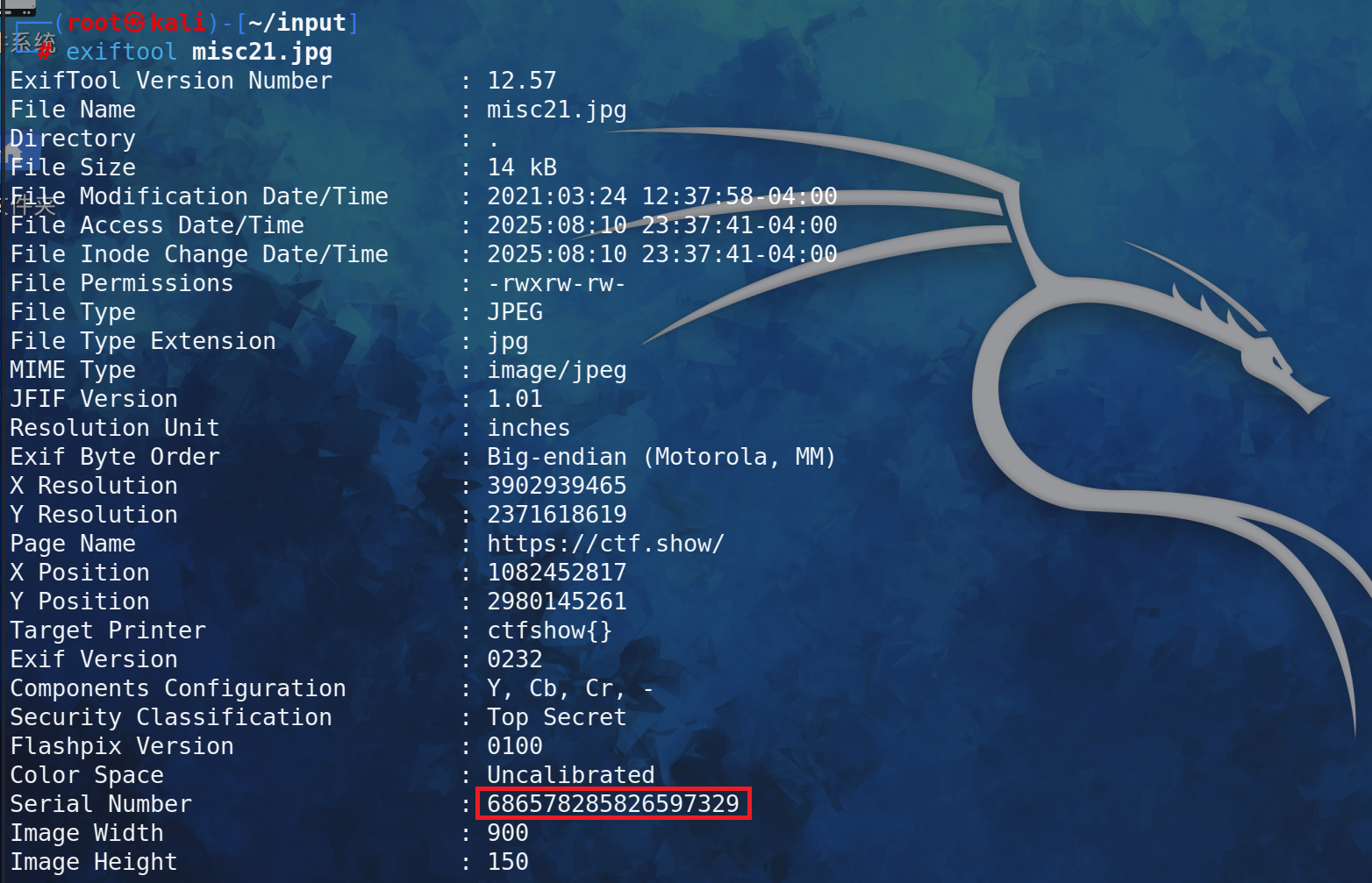 题目提示flag在序列号里。用exiftool查看图片信息,发现序列号: