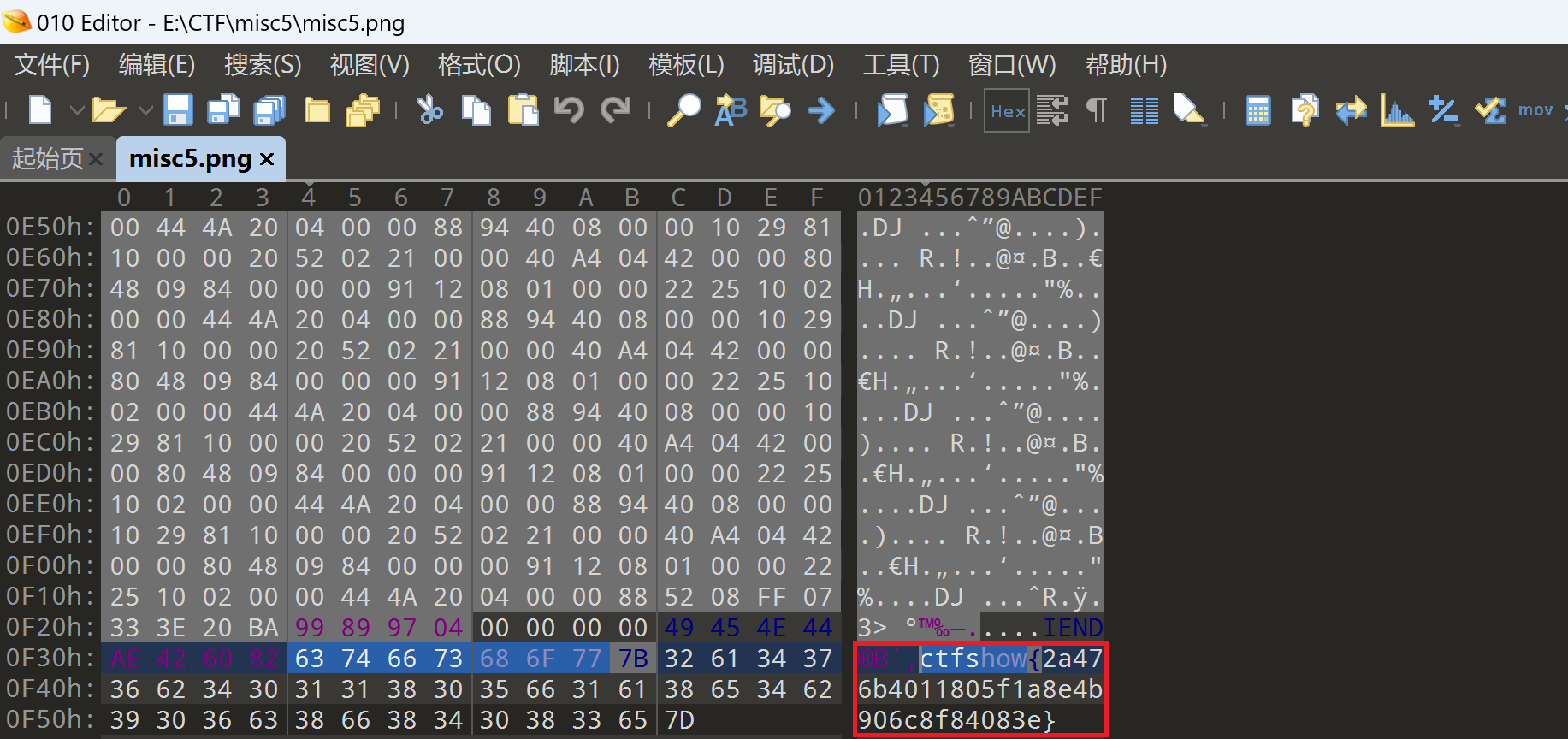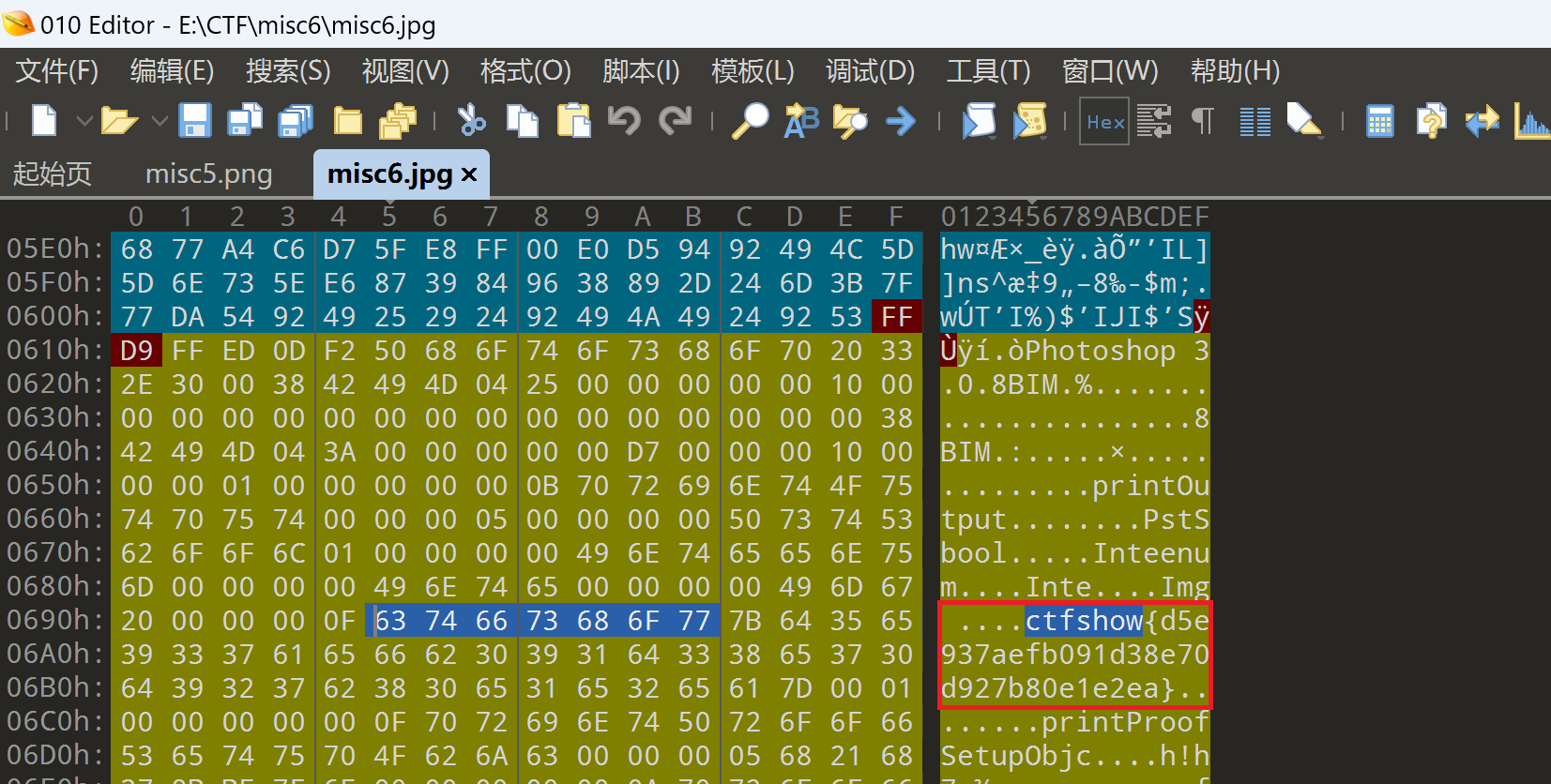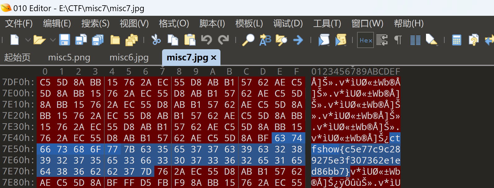 还是同样的方法,用010editor打开,ctrl+F查找ctfshow,得到flag:
