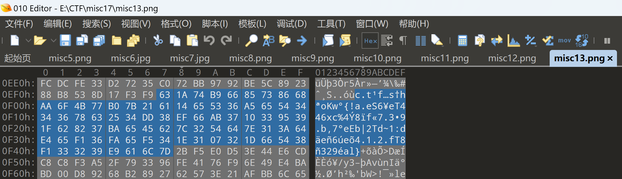 用010editor打开后,在最后找到了一串疑似flag的字符串:
