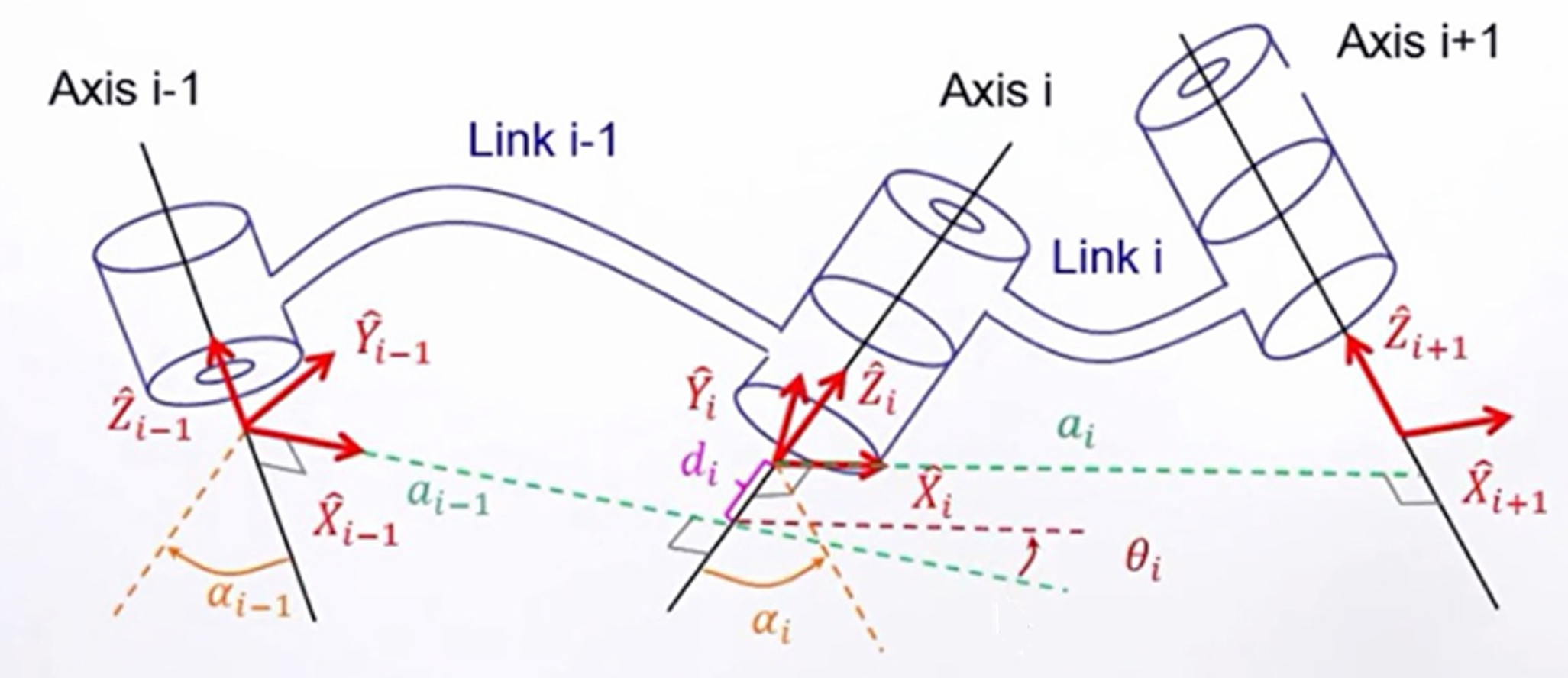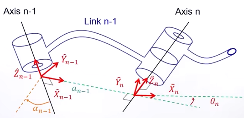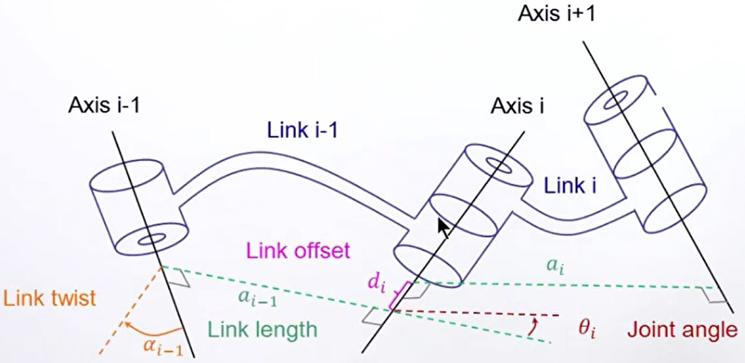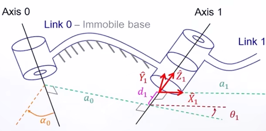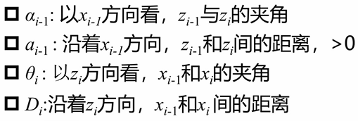 如上图所示,如果只有连杆长度与扭转角两个参数,是没有办法准确描述多杆串联的特征的,因此引入了下面两个参数: