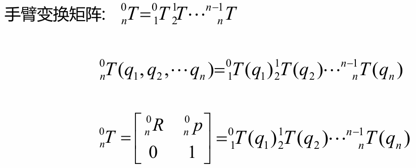 上式即为正向运动学方程,表示末端连杆的位姿与关节变量之间的联系。