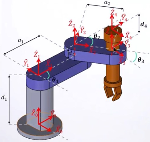 a. 与平面机器人类似,也是先定义杆号;
