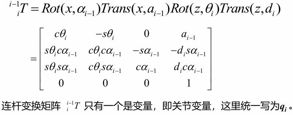 所以这样如果对于移动关节,那么只有偏置是一个变量;而对于转动关节其关节角
