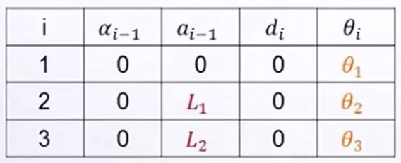 ①对于平面RRR机器人,建立其连杆坐标系并列写D-H参数表