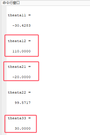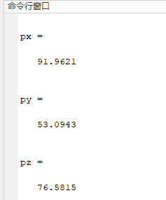 px、py、pz代入正运动学求解的那个坐标(91.9621,53.0943,76.5815),运行程序可以得到以下结果: