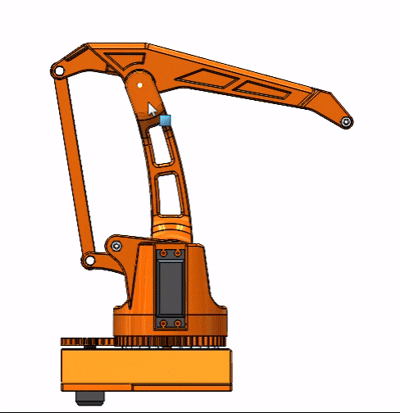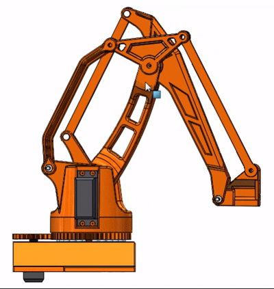 图中输入运动的就是实际舵机控制的主动杆,你可以发现无论大臂或是小臂的运动,其末端的结构都会一直保持水平,这其实就是双平行四边形机构的精巧之处了。